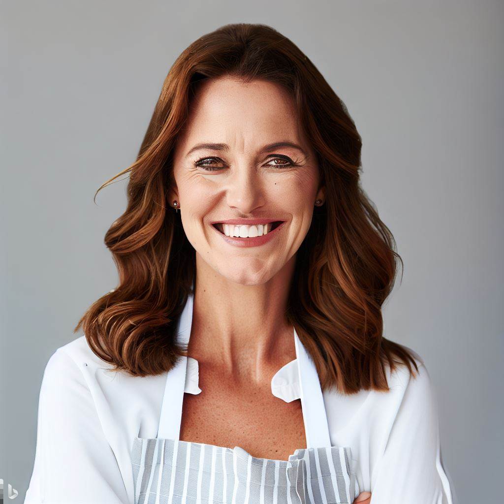Samantha rushes around her kitchen cooking. The doorbell rings.